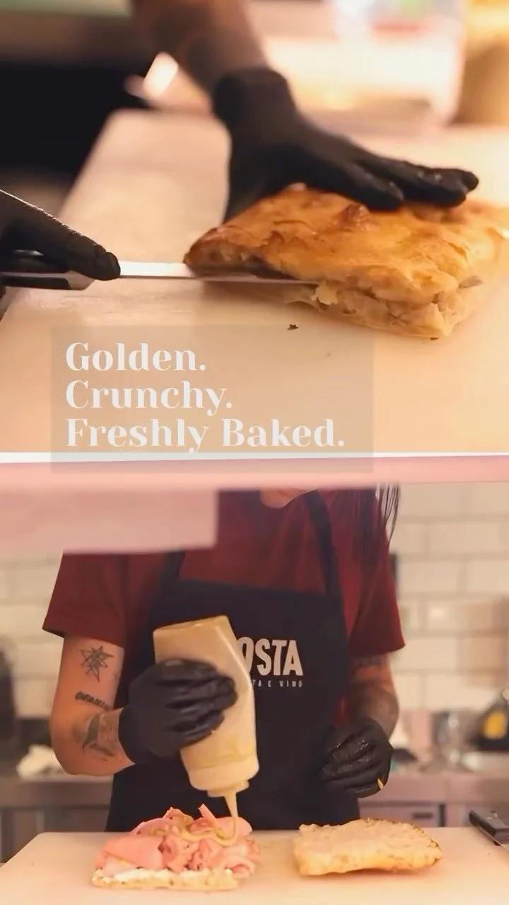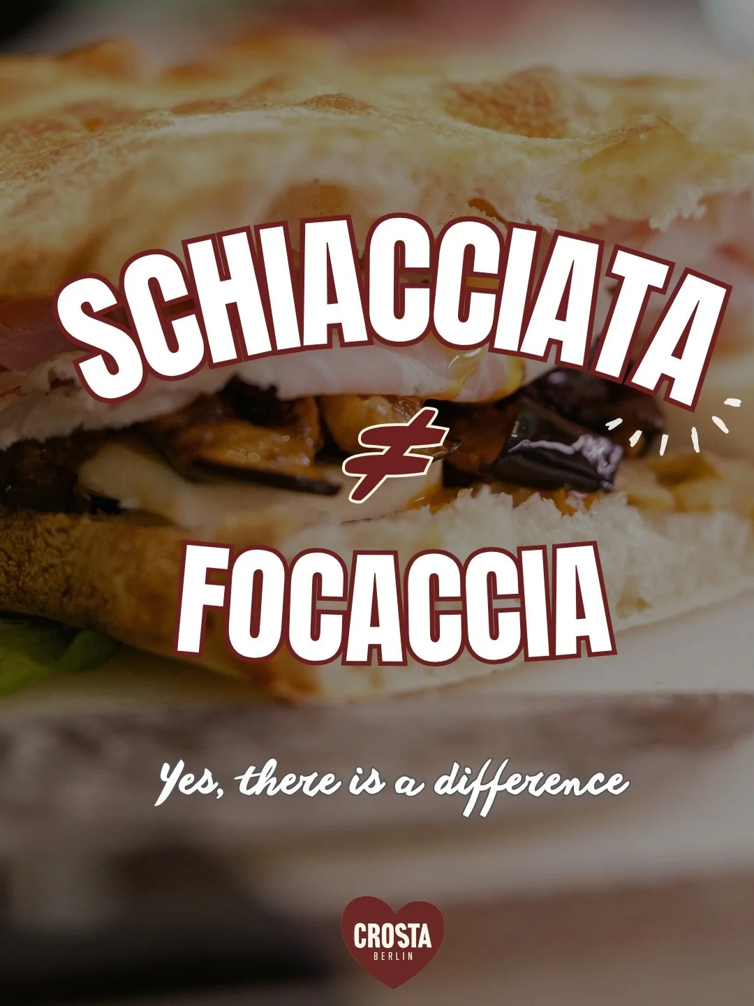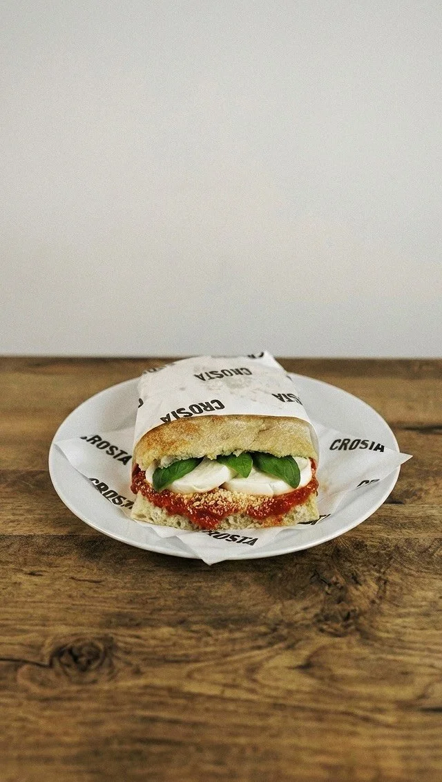 At Crosta, we bring this tradition to Berlin. Our schiacciata is made with a sourdough base, slowly fermented for lightness and flavour, then baked to golden perfection. It’s filled with the best Italian products — from creamy stracciatella and smoked provola to porchetta di Ariccia and mortadella from Bologna.